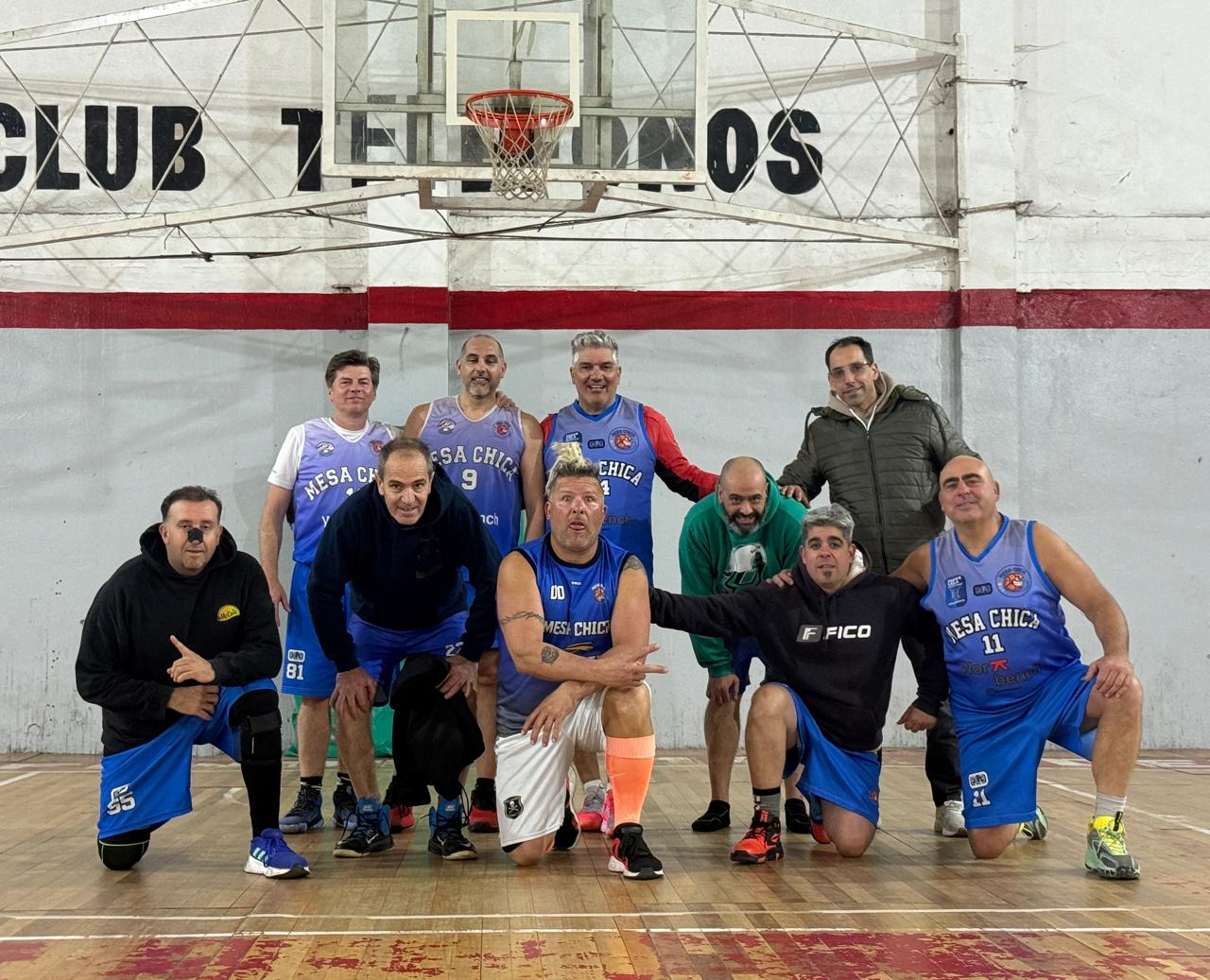 Los jugadores locales Roberto Bliger y Fabián Trama sumaron minutos en el equipo de la categoría +48 de Mesa Chica que milita en la Liga Mar y Sierras de Básquetbol.