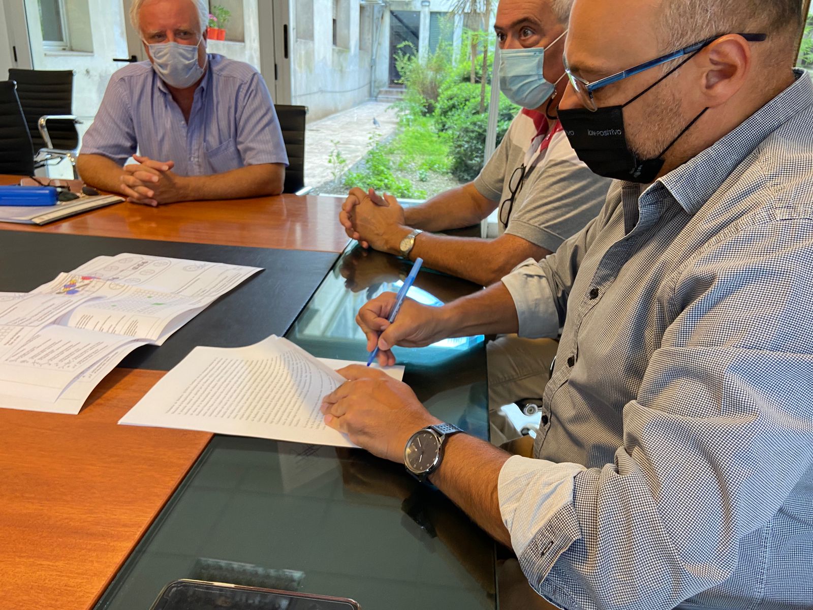 El intendente Esteban Reino, junto al secretario de Gobierno Ricardo Stoppani, y el concejal Gonzalo Scioli recibieron a los integrantes de la Asociación de Bomberos Voluntarios de Balcarce para la firma de la cesión del predio donde se ubica la plaza “Carlos Gardel”, en Av. Aristóbulo del Valle y 2.