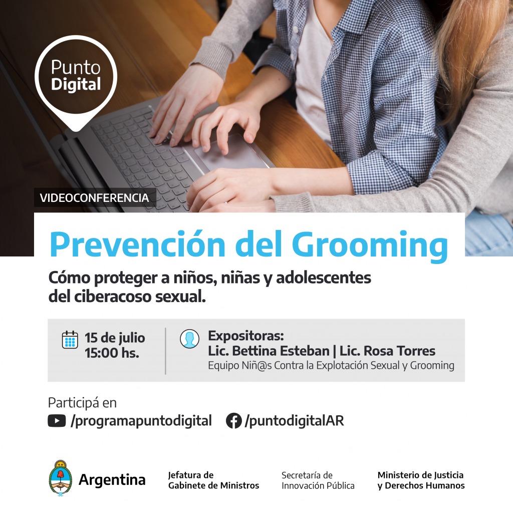 La coordinadora del Punto Digital, Laura Gómez, participó ayer de una capacitación en “Prevención del grooming” con el objetivo de proteger a niños y adolescentes del cyberacoso sexual organizado por el Programa Punto Digital de Presidencia de la Nación.