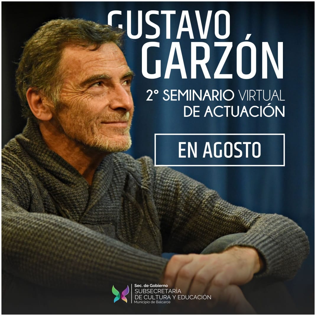 La Subsecretaría de Cultura y Educación informó que el reconocido actor Gustavo Garzón presentará de manera virtual un seminario de actuación de manera gratuita. Es un anticipo de lo que sucederá en agosto teniendo en cuenta que en los próximos días se fijará fecha y hora por parte de la producción.