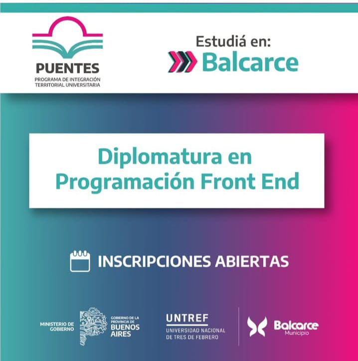 La Dirección de Juventud informa que ya se encuentra habilitada la inscripción para la Diplomatura en Programación Front End, certificada por la Universidad Nacional de Tres de Febrero (UNTREF).