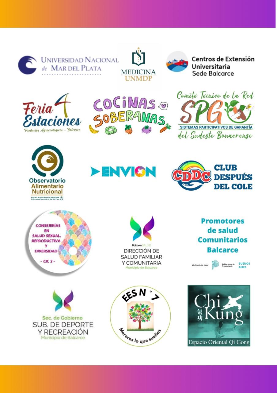 Organizan y participan: Universidad Nacional de Mar del Plata (Facultad de Ciencias de la Salud y Trabajo Social – Medicina), Centro de Extensión Universitaria Sede Balcarce, Cocinas Soberanas, Comité Técnico de la Red SPG del Sudeste Bonaerense, Observatorio Alimentario Nutricional, Programa “ENVION”, “Club después del Cole”, Consejerías en Salud Sexual y Diversidad, Promotores de Salud Comunitarios, EES N°7, Chi Kung Espacio Oriental Qi Gong, Subsecretaría de Deporte y Recreación, y la Dirección de Salud Familiar y Comunitaria.
