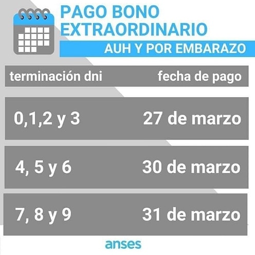 En el marco de la emergencia sanitaria, el organismo previsional dispuso adelantar para el viernes 27 de marzo el pago del bono extraordinario destinado a todos los titulares de la Asignación Universal por Hijo (AUH) y Asignación por Embarazo.