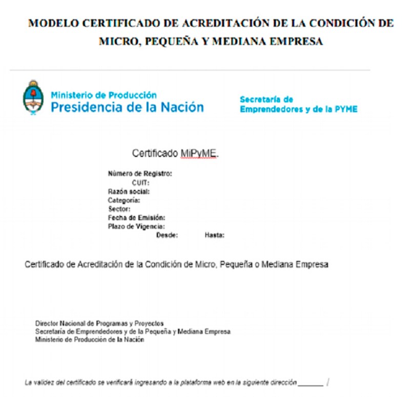 La inscripción en el Registro MiPyME, y por lo tanto el certificado vigente, será condición necesaria para acceder a los beneficios de la Ley 27.541 de Solidaridad Social y Reactivación Productiva: