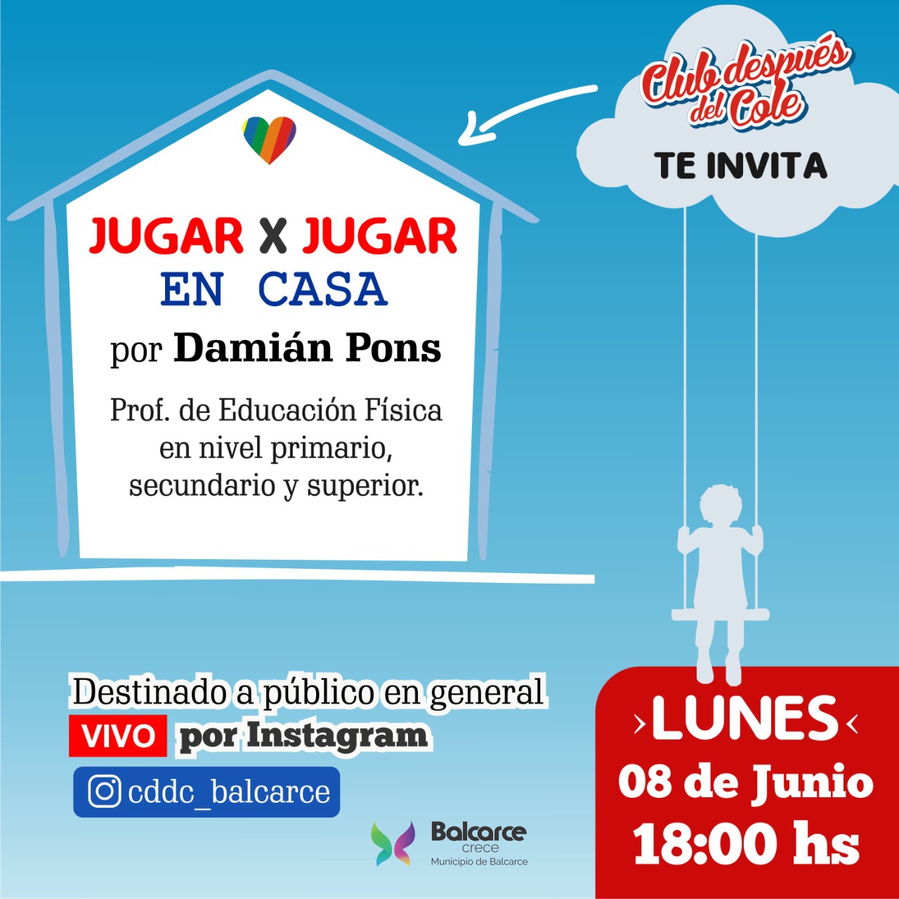 La cita será a las 18 por el Instagram de “Club después del Cole”: cddc_ balcarce