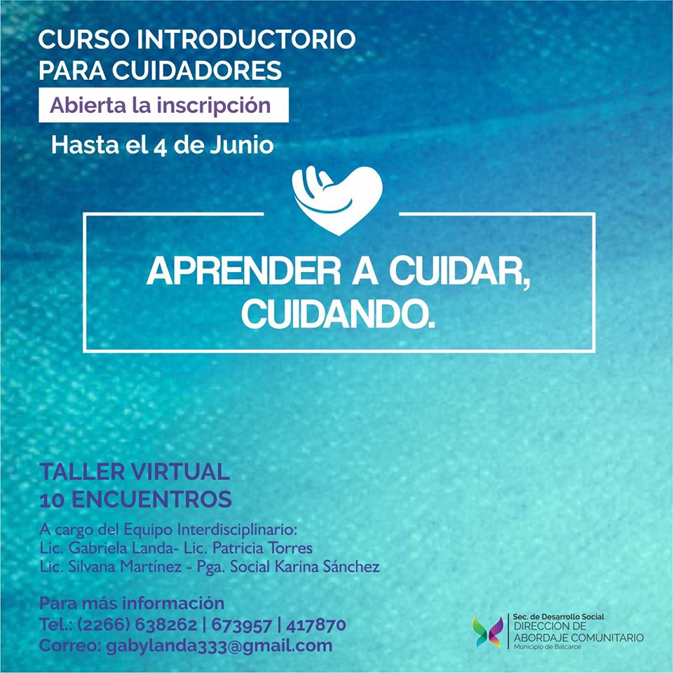 Se trata de un taller virtual de diez encuentros bajo el lema “Aprender a cuidar, cuidando”. Quienes deseen obtener más información podrán comunicarse con los celulares (2266) 638262, 673957 y 417870 o vía mail a gabylanda333@gmail.com.