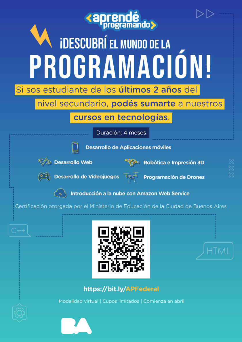 El mundo de hoy se encuentra atravesado por la tecnología. Por eso, el Ministerio de Educación de la Ciudad de Buenos Aires lanzó, hace más de cinco años, Aprendé Programando Virtual. Esta iniciativa introduce a los jóvenes en el universo de la programación y las nuevas tecnologías: el foco de los contenidos está puesto en prepararlos para los trabajos del futuro, considerando tanto las habilidades tecnológicas, las blandas y las socioemocionales.