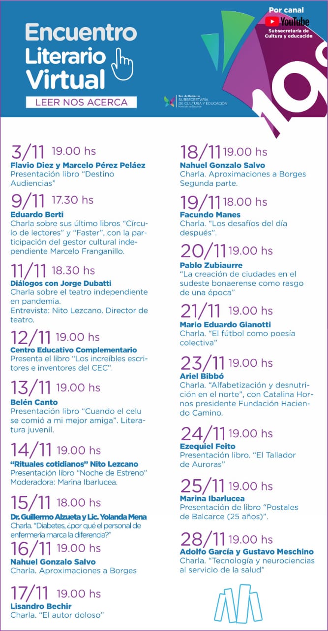 De Gerónimo indicó que “vamos a poder contar con Facundo Manes o Eduardo Berti que vive en París, que es un escritor muy reconocido, y los van a poder ver y escuchar desde diferentes partes del mundo”.