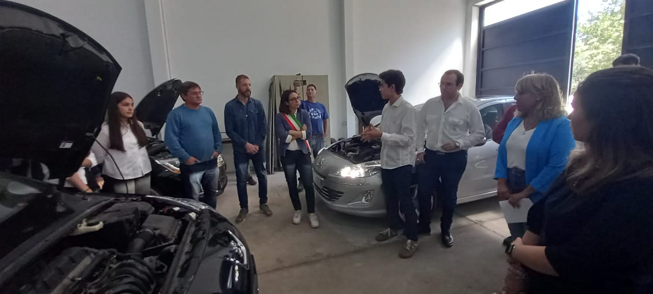La delegación recorrió las instalaciones de la Escuela Técnica y culminó la visita con una conexión vía streaming entre estudiantes de la Tecnicatura en Automotores y la Escuela de Ferrari en Italia.