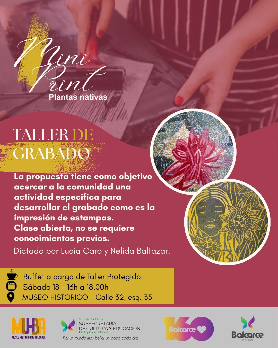 El próximo sábado 18, de 16 a 18.30, el Museo Histórico Municipal invita a disfrutar de una jornada especial en el marco del cierre de la exposición internacional “Mini Print – Plantas Nativas”.
