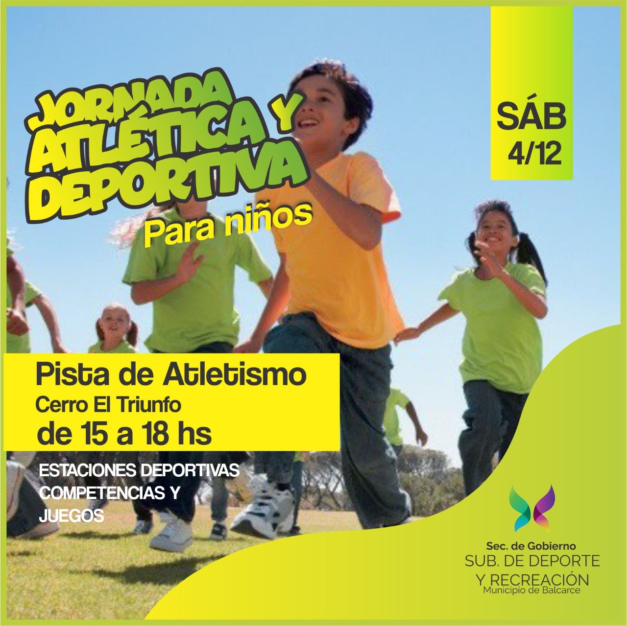 La Subsecretaría de Deporte y Recreación informa que el próximo sábado se desarrollará la última jornada atlético-deportiva. La actividad es coordinada por el área de Deporte Social y se llevará a cabo en la pista de atletismo de Parque Municipal Cerro “El Triunfo”, comenzando a las 15 y extendiéndose hasta las 18.