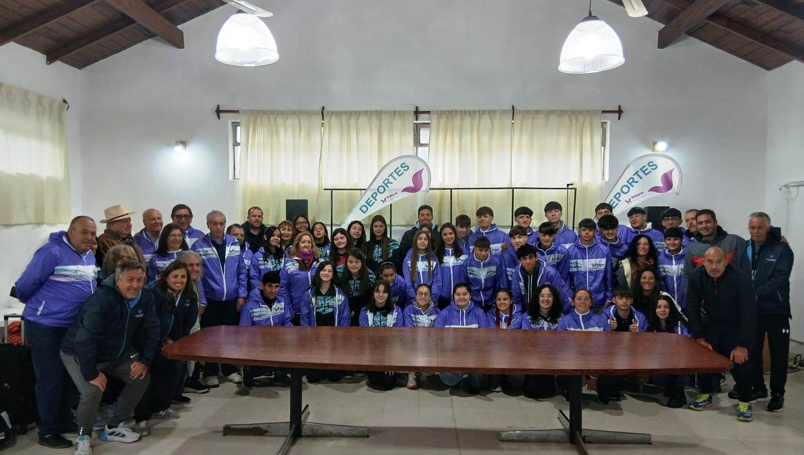 Debido a las condiciones climáticas, la foto oficial se tomó en la Sala “Dr. Victorio Tommasi”, donde se vivió un momento de emoción y expectativa ante el inminente inicio de la competencia.