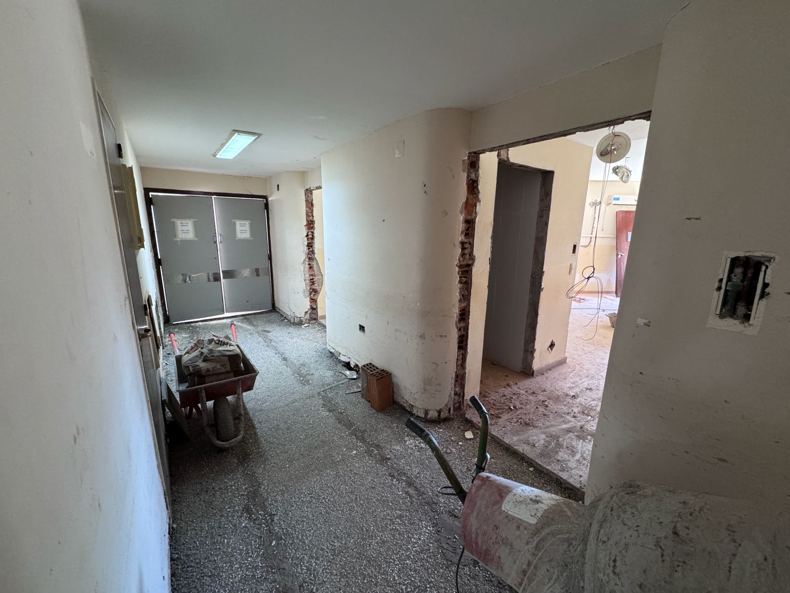 Durante los últimos días se avanzó en el llenado de los contrapisos, luego de haber sido necesario demoler aproximadamente 25 centímetros de espesor para alcanzar la losa original y realizar un nuevo nivelado. Paralelamente, se retiraron los antiguos marcos de chapa, los cuales serán reemplazados por estructuras de aluminio de mayor resistencia y durabilidad.