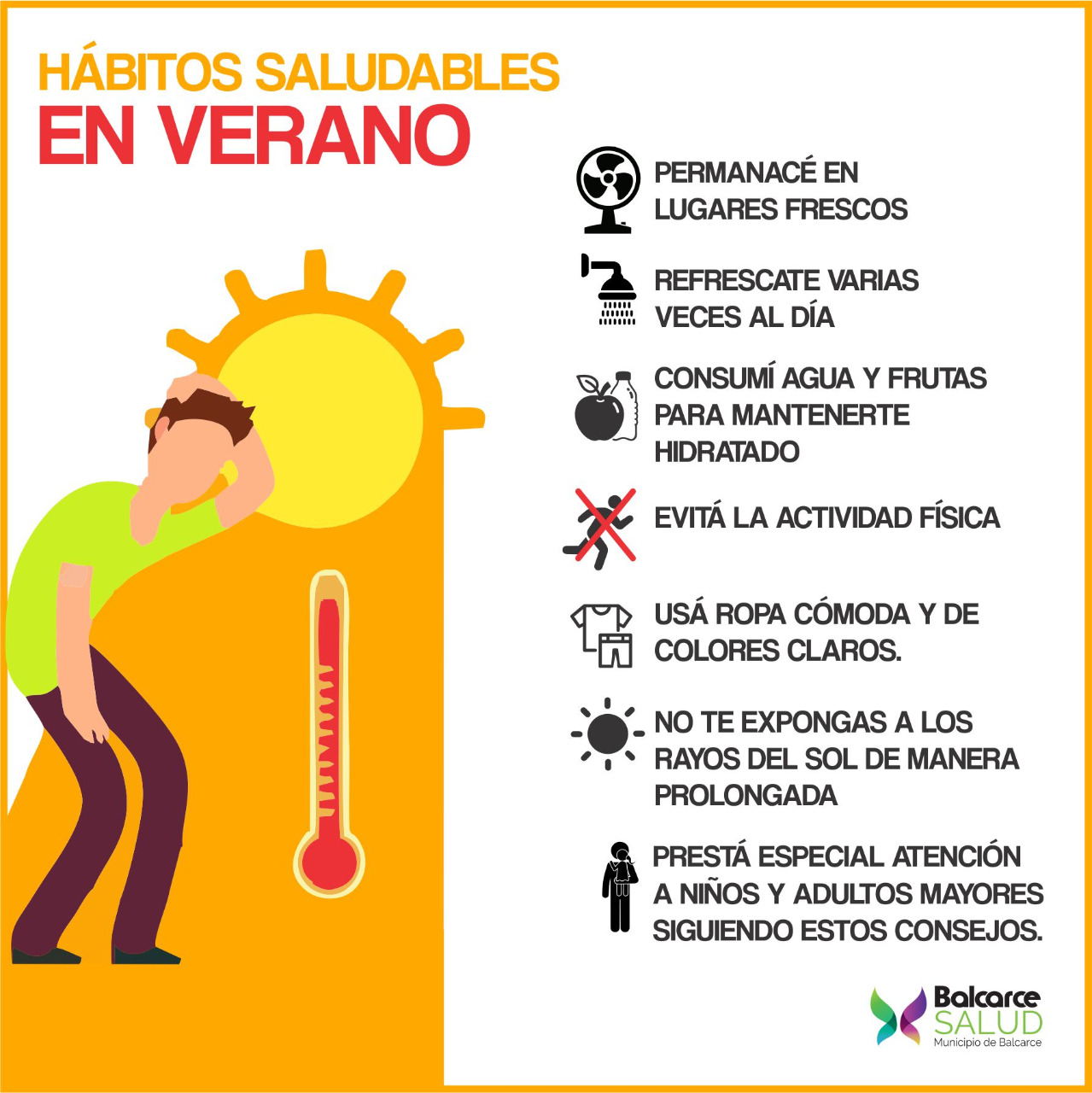 El servicio meteorológico nacional indica para los próximos días temperaturas que superaran los 30 grados y en algunos casos hasta llegaría a los 40, es por eso que se solicita consumir agua constantemente, evitar la actividad física en horarios donde la temperatura sea elevada y no exponerse a los rayos del sol por un tiempo prolongado.