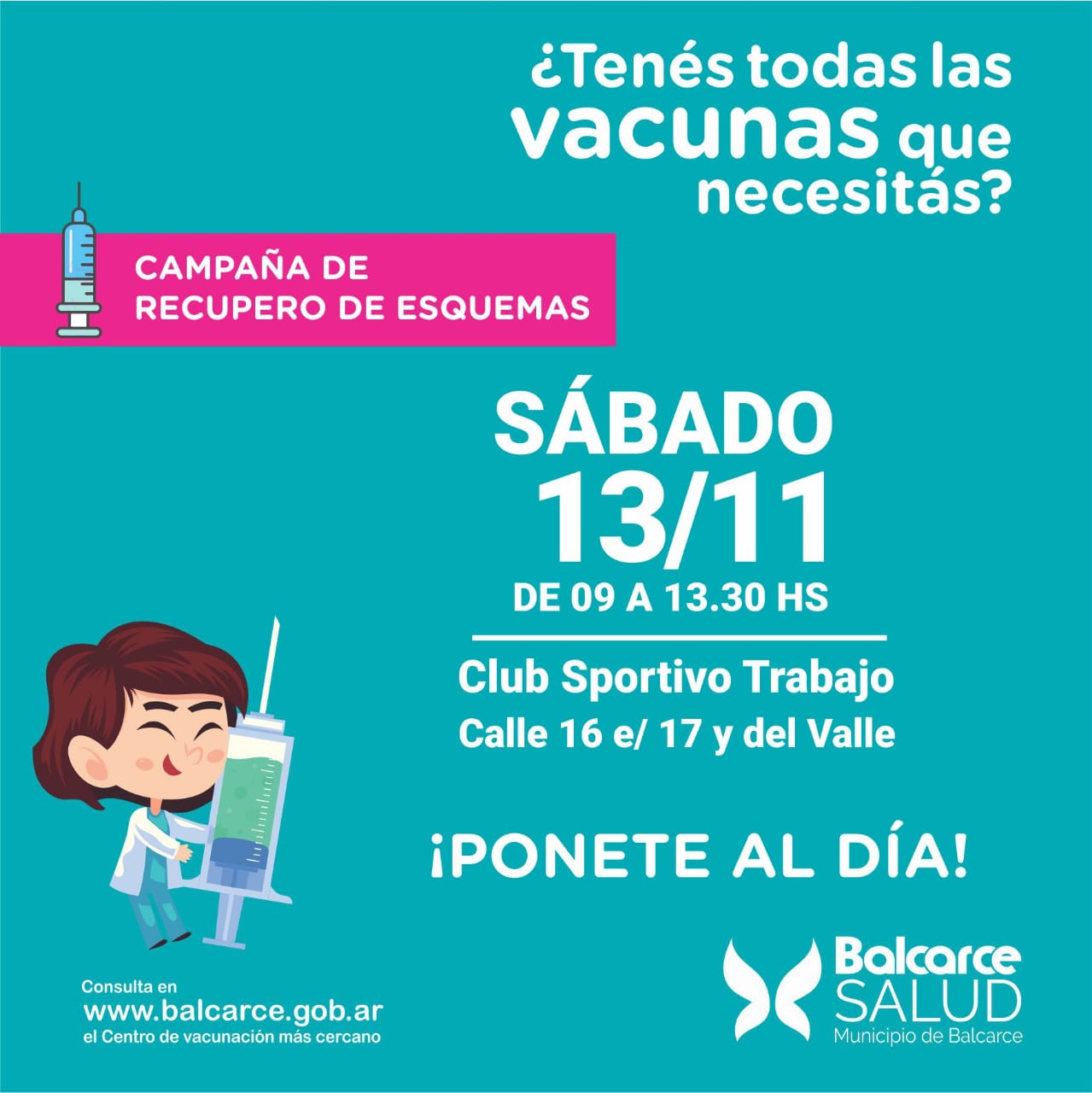 Mañana, se llevará a cabo un encuentro con las vacunadoras del Hospital Municipal “Dr. Felipe A. Fossati” y de los CAPS en el Club Sportivo Trabajo, en horario de 9 a 13.30.