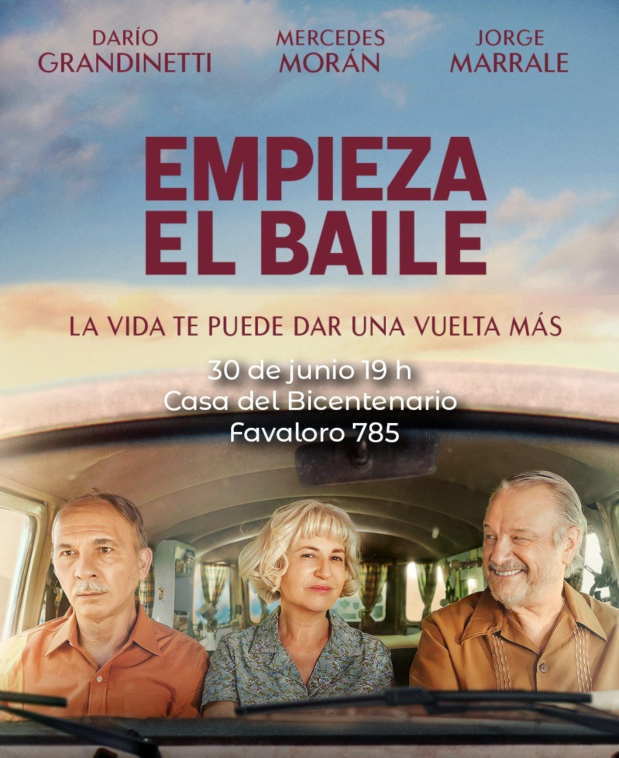 El domingo, a partir de la hora 19, Cine en La Casa presentará “Empieza el baile”, con entrada libre y gratuita en su sede de avenida Favaloro 785. En el reparto se encuentran Darío Grandinetti, Mercedes Morán, Jorge Marrale, Pastora Vega, Agostina Pozzi