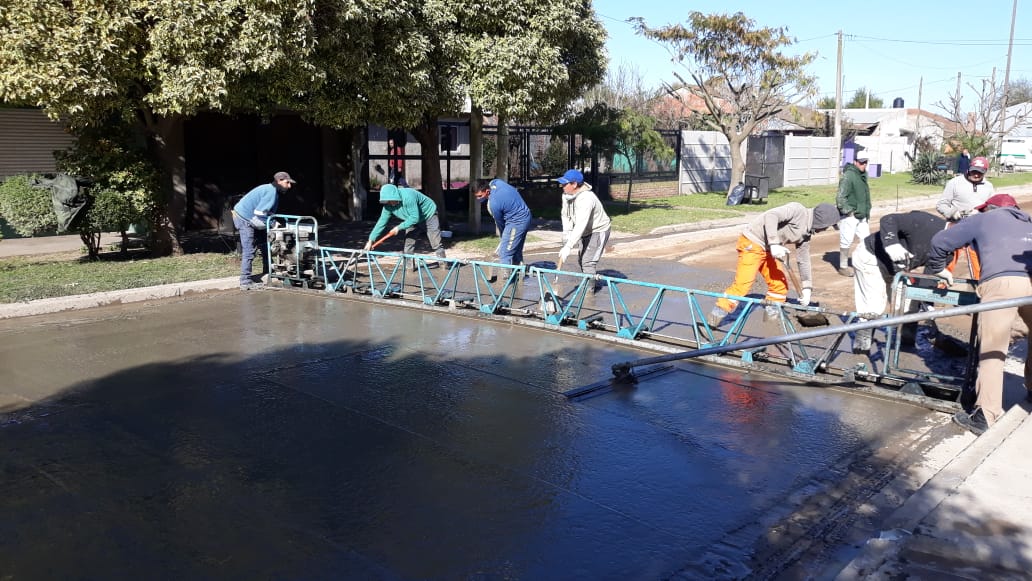 Dándole continuidad al cronograma diagramado en el plan de pavimentación de calles de tierra por parte de la Subsecretaría de Obras Públicas se inició en la mañana de ayer el trabajo de colocación de hormigón en calle 8 desde 31 a 33.